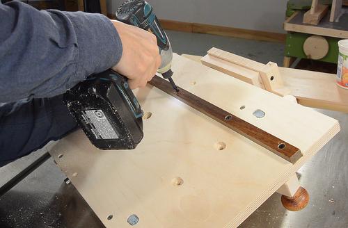Now attaching a piece of hardwood to act as a fence for the workpiece.