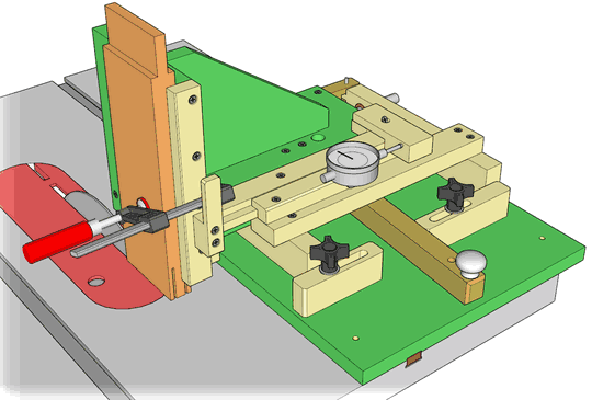 The quick set tenon jig is designed to quickly move between cut positions using a lever so that both sides of a tenon can be cut without having the flip the workpiece. This makes for more precise joints and faster operation. The jig can also take templates so that double or triple tenons can be cut with it without re-mounting the workpiece.