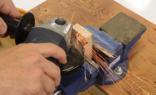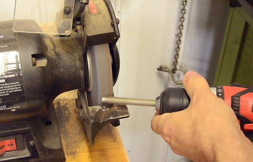 I started by making a "jig" to hold the threaded rod for grinding slots in it.