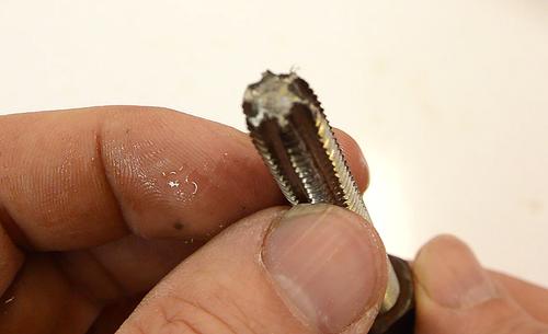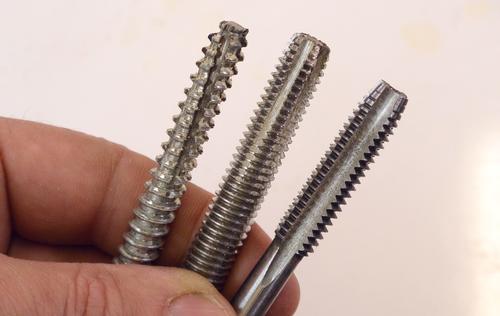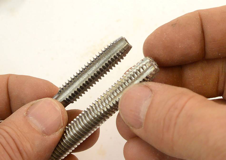 The homemade tap cuts the thread with just the first few turns so it can cut
