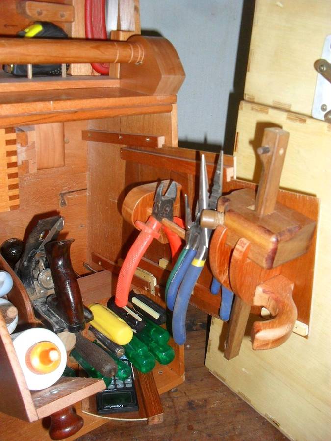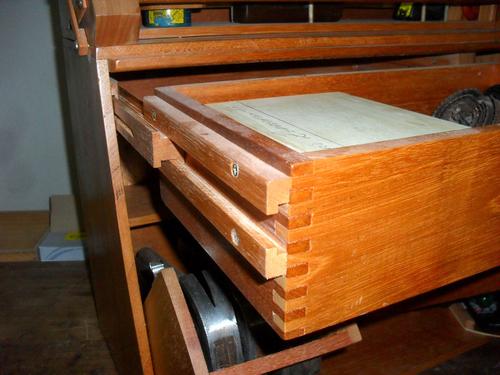 I like the homeade full extension slides on the drawer and the slide out panel!