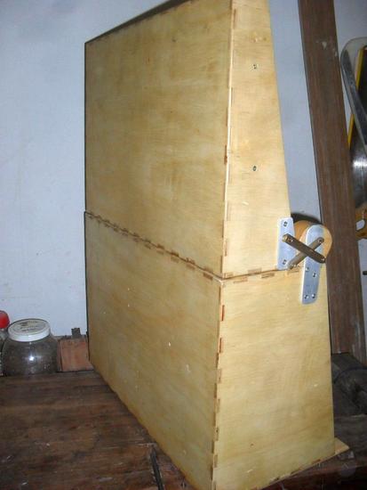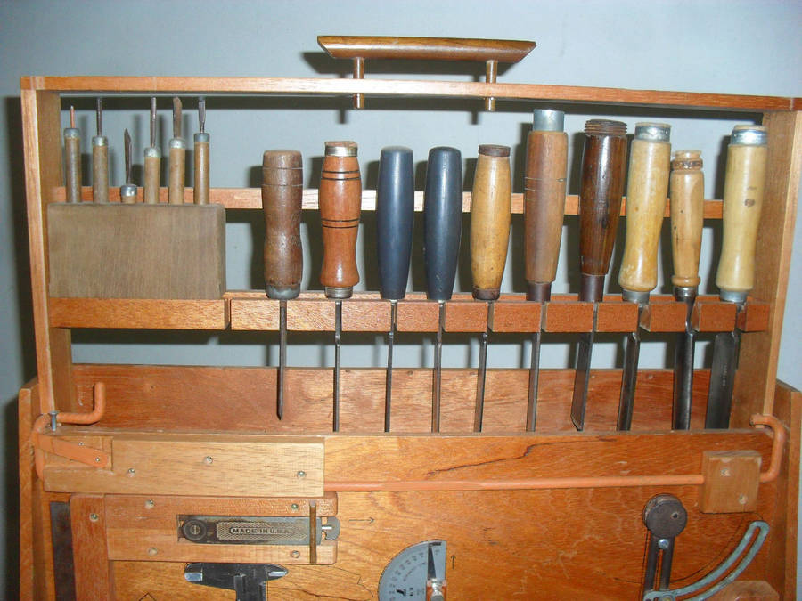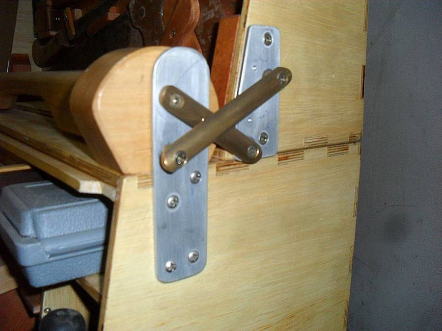 Not obvious at first glance is the bent piece of re-bar used to lock the chisel holder in it's upper (or lower) position. The re-bar is painted light brown, so it blends in with the wood.