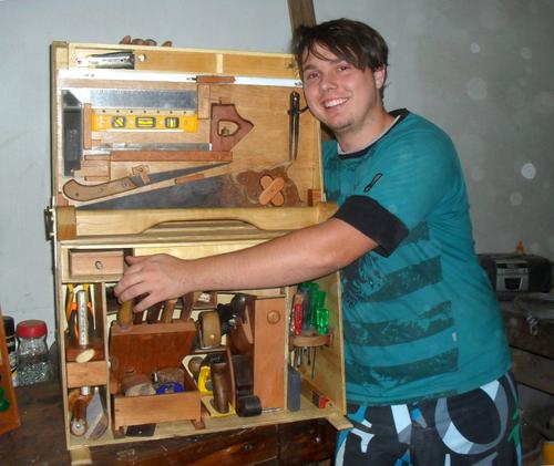 Wow, those are some nice tool chests. I think you exceeded the Würth tool chest you were inspired by! I was curious about theeir ages, and David Jú replied indicate he's 22, and his friend is 21. David is the one on the left on the workbench. Nice video (at left) too! |