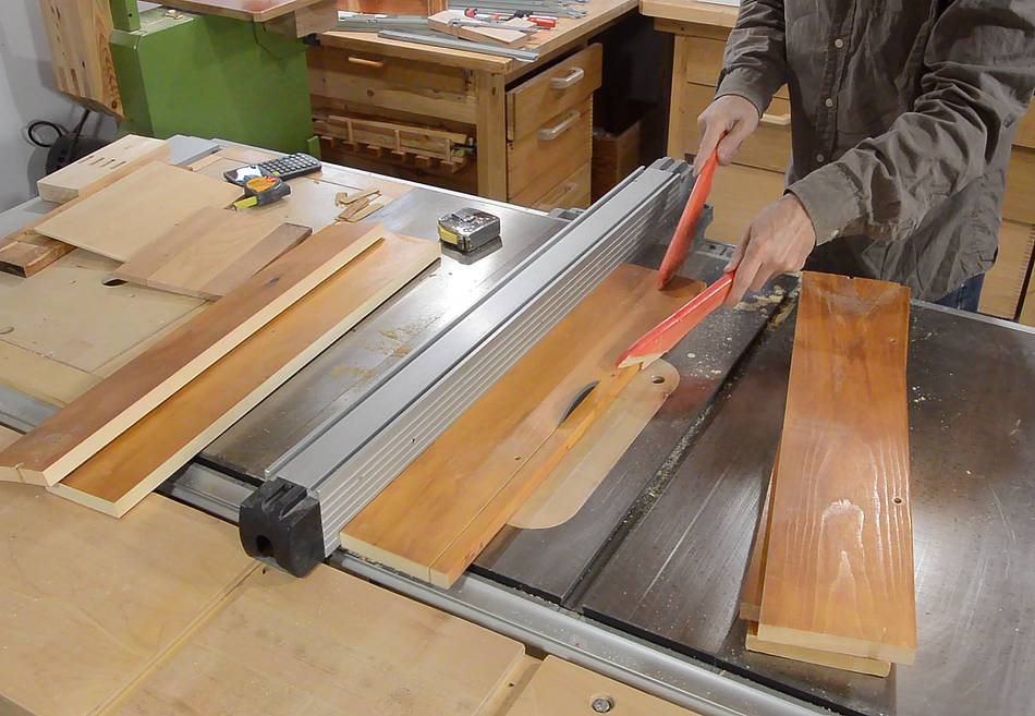 I used some red oak for the drawer fronts. Here I'm cutting 5 mm thick