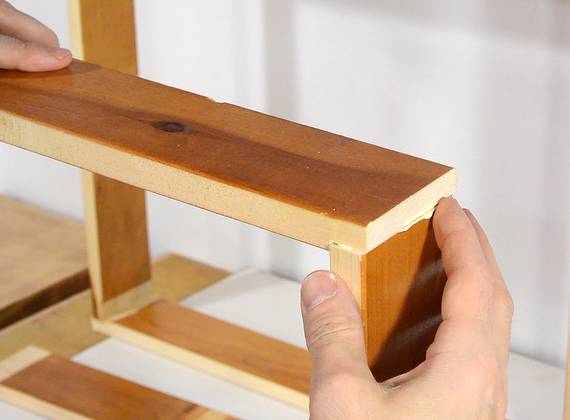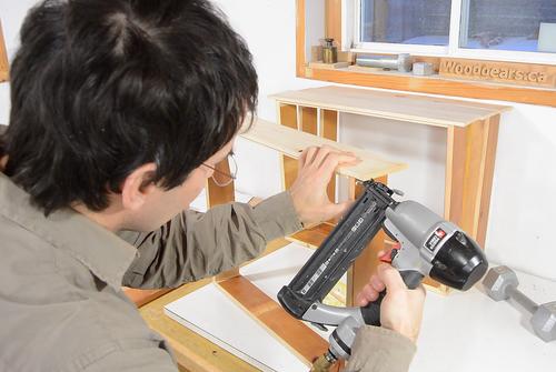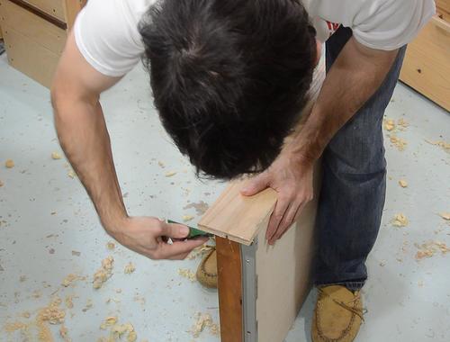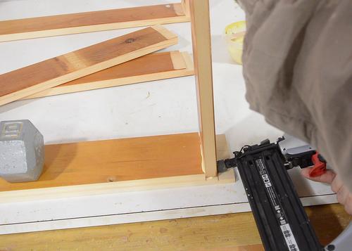 Nailing the sides onto the fronts, nailing from the side. That way, the
