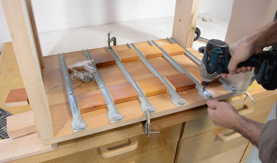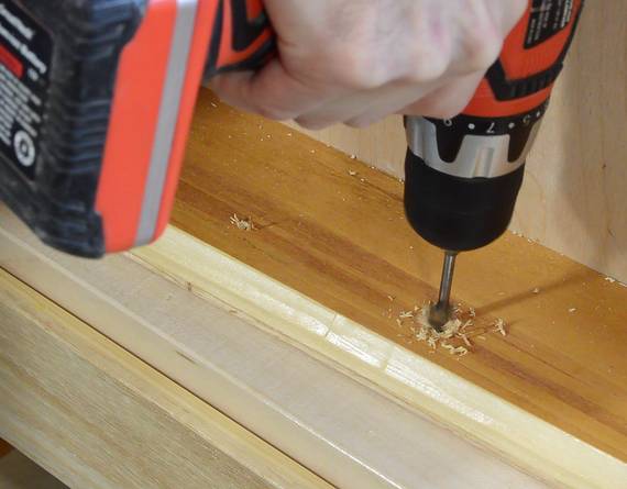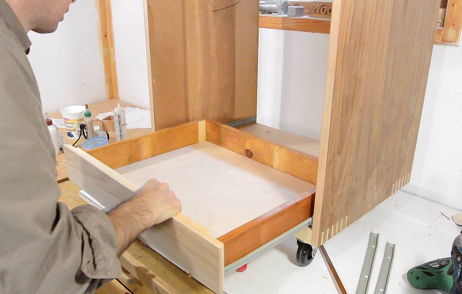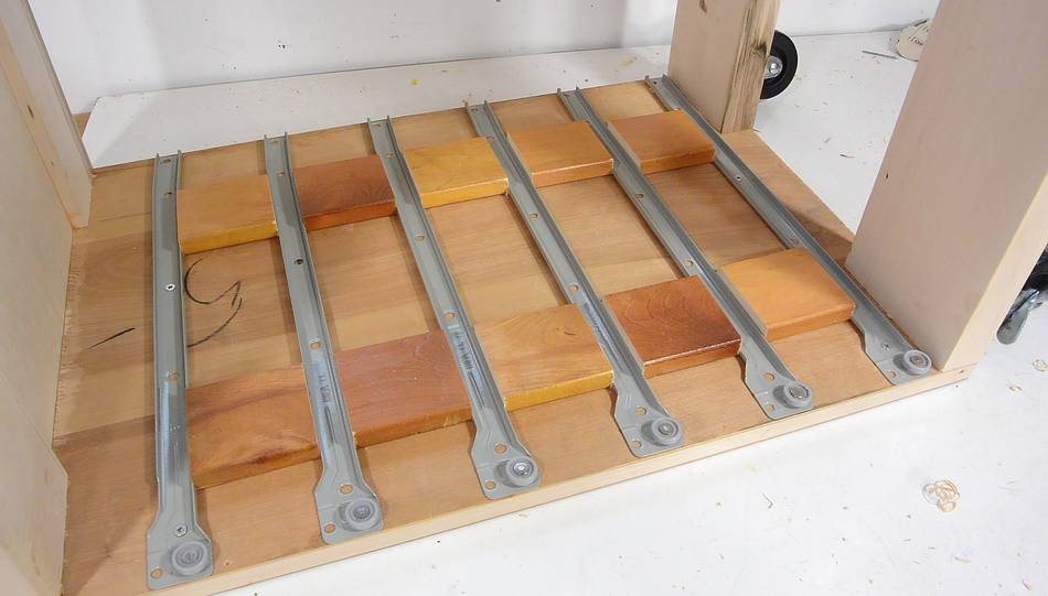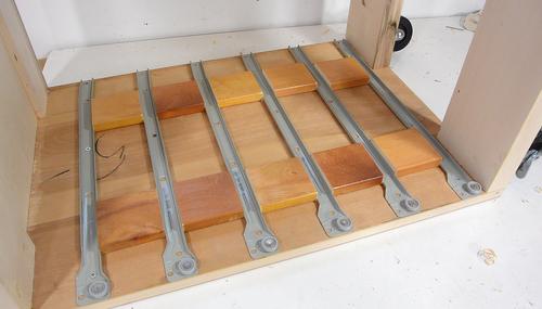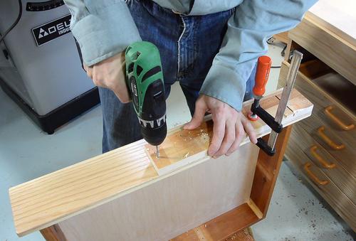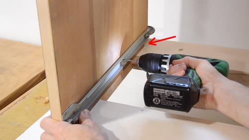 drilled pilot holes, and screwed on the drawer slides.