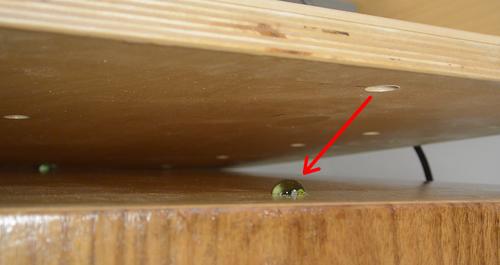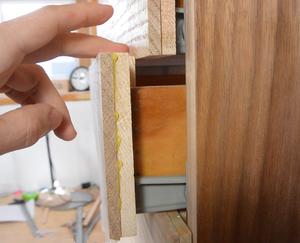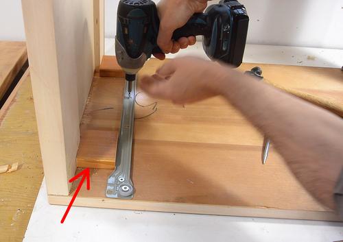 cabinet. I then made some spacers (see arrow), clamped the slides