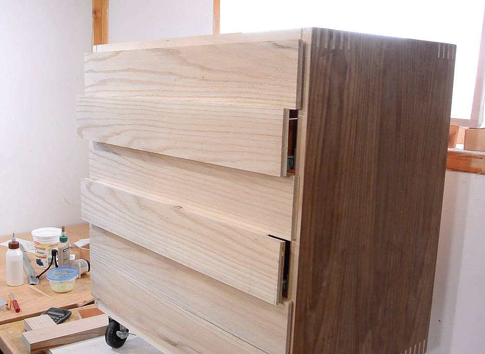 veneer protruding past the drawer fronts.