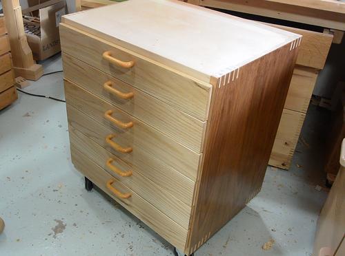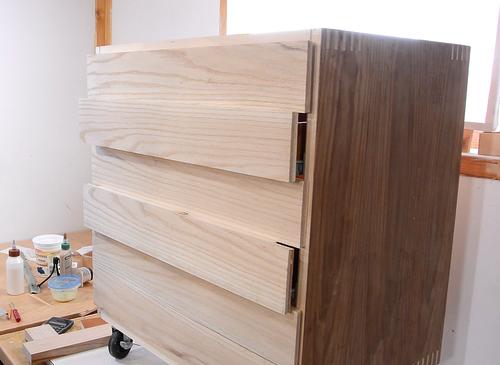 The drawers received one coat on the inside bottom of the drawers, and on the front