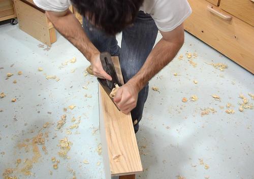 ... and using another hand plane to smooth the fronts of the drawers.