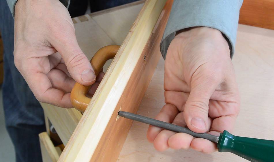 positioning the holes for the handles.