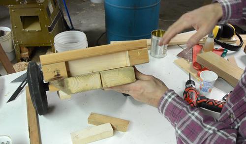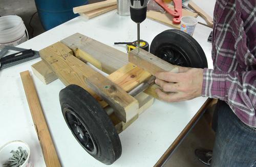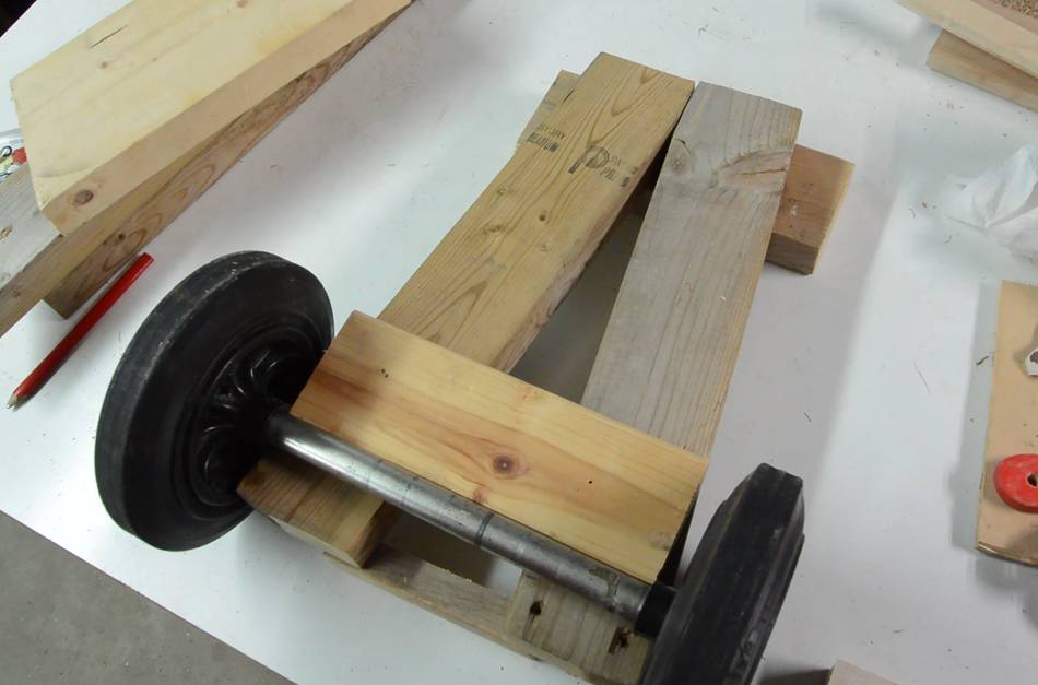 I screwed another piece of wood against the end with the axle, to make