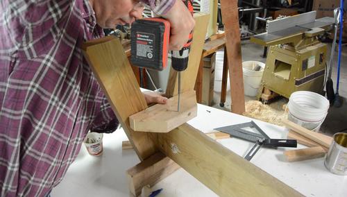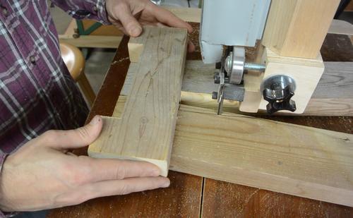 After bandsawing that, I screwed on the crosspiece for the bottom.