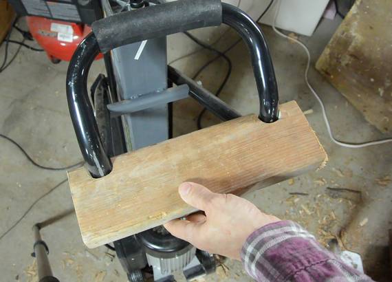 Then I had the idea of making a hook-shaped piece to hold the splitter's axle
