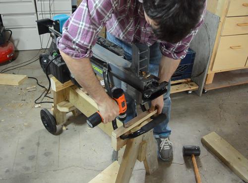 I originally hadn't planned on attaching the log splitter to the stand, but it was