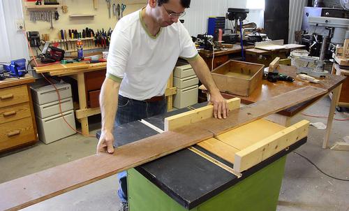 For material I used some old plywood. Here cutting up a leftover strip of plywood