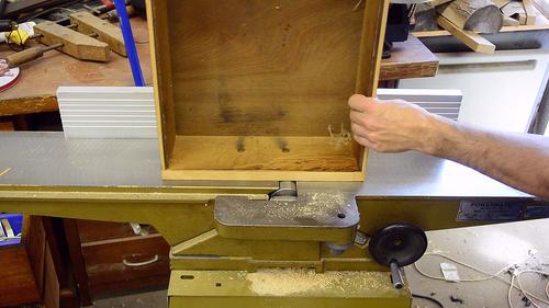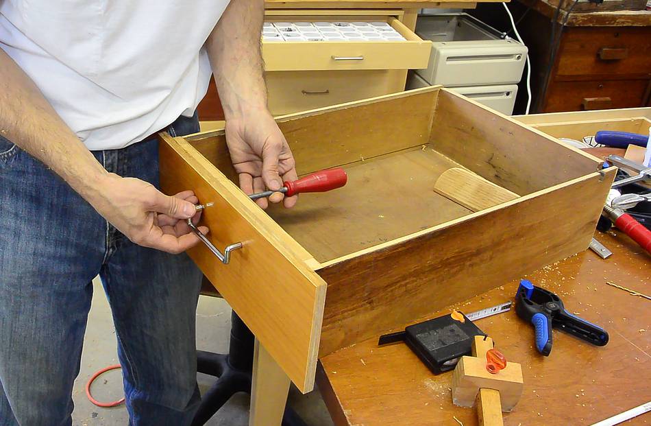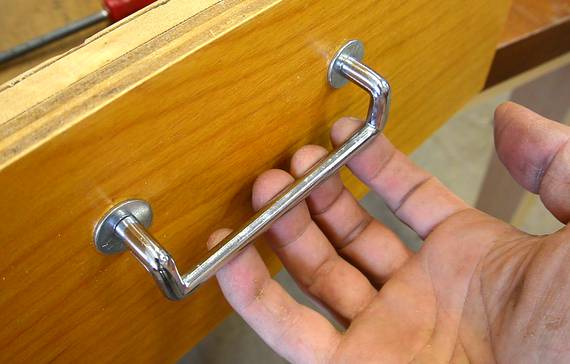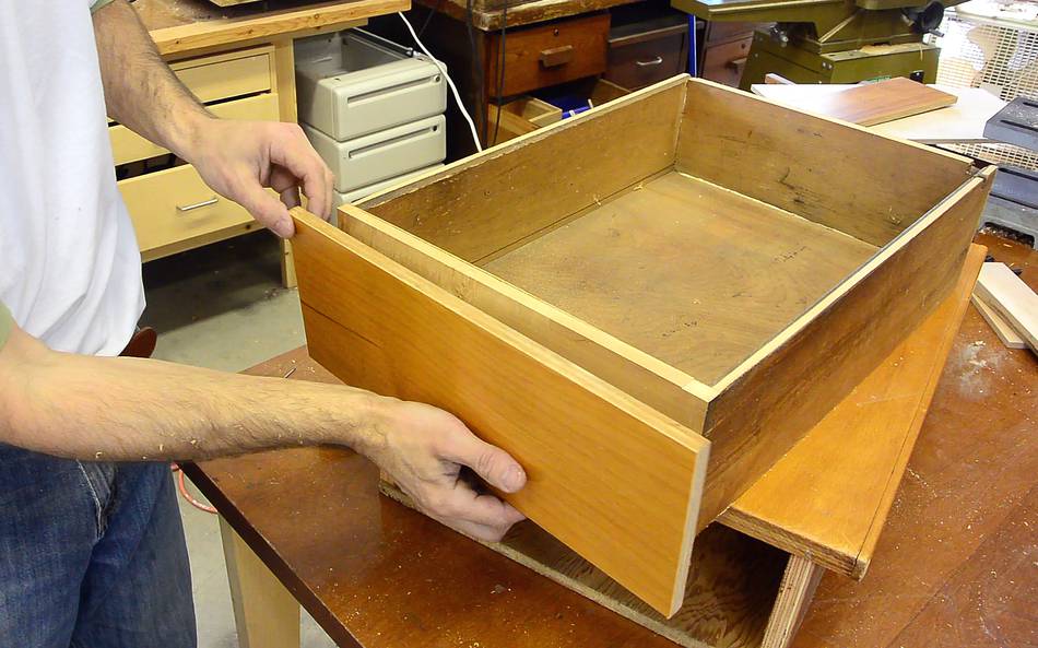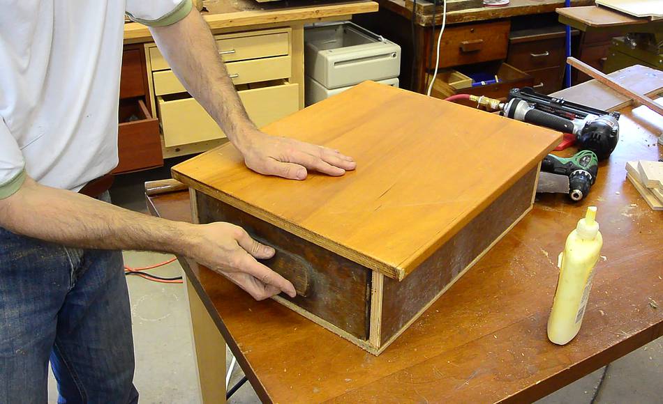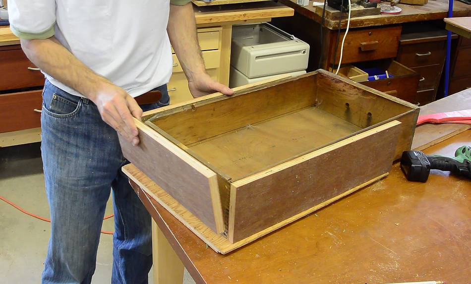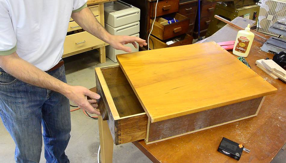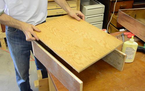 a pre-finished scrap of plywood as a new drawer front. I made it slightly