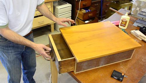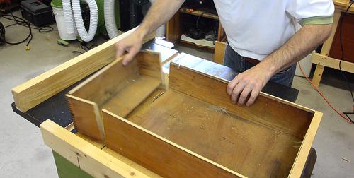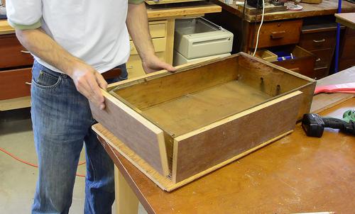 Checking how the pieces will fit around the old drawer that I want to reuse.