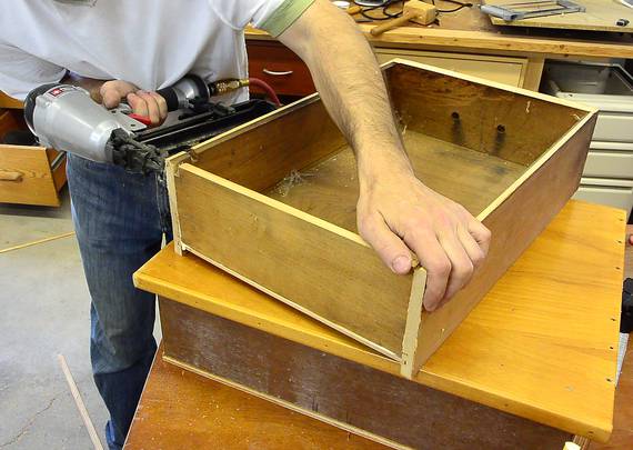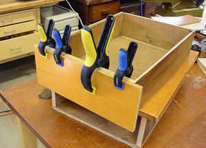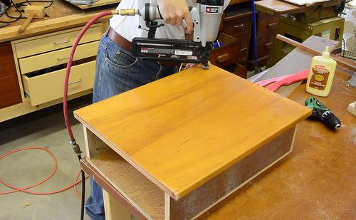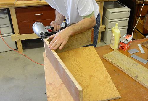 A piece of 1/2" plywood will form the bottom, also glued and nailed on.