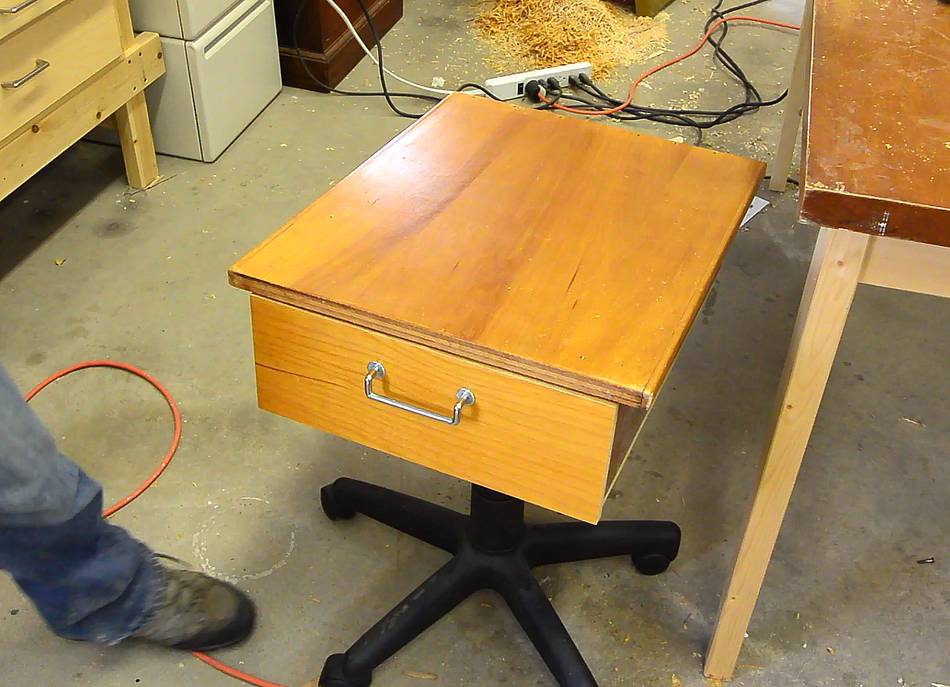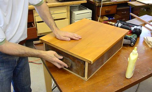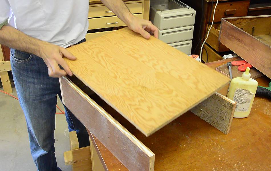 A larger piece of plywood, already varnished, forms the top. This plywood even