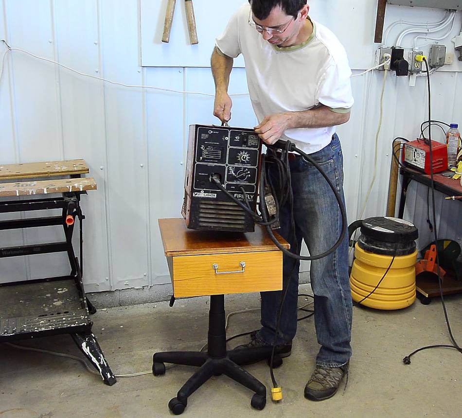 I wanted to make a cart for this old wire-feed welder. I first thought of making