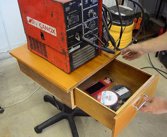 The drawer is useful for keeping extra welding wire, welder tips and welding mask lenses. It's nice to have a logical place for that stuff.