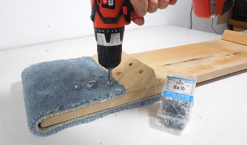The carpet is held on with some 1/2" #8 sheet metal screws with wide flat heads.