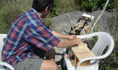 power supply, controller switches and tall cable mast. Battery remote controlled