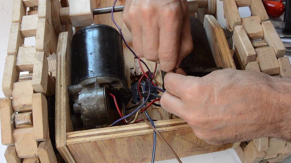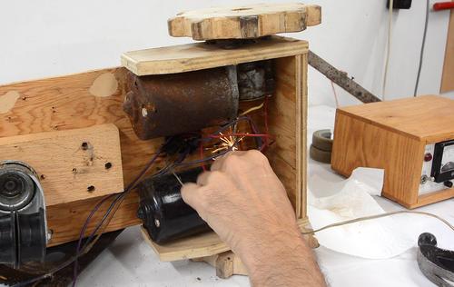 Speed control was achieved by connecting power to different brushes on the
