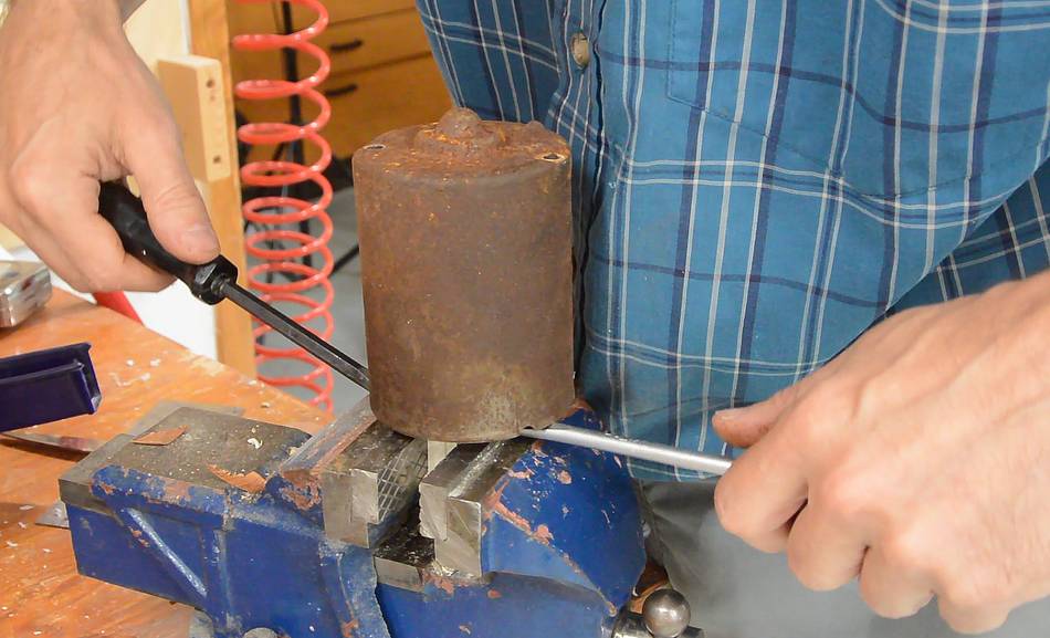 in the vise and using two screwdrivers to pull up on the housing.