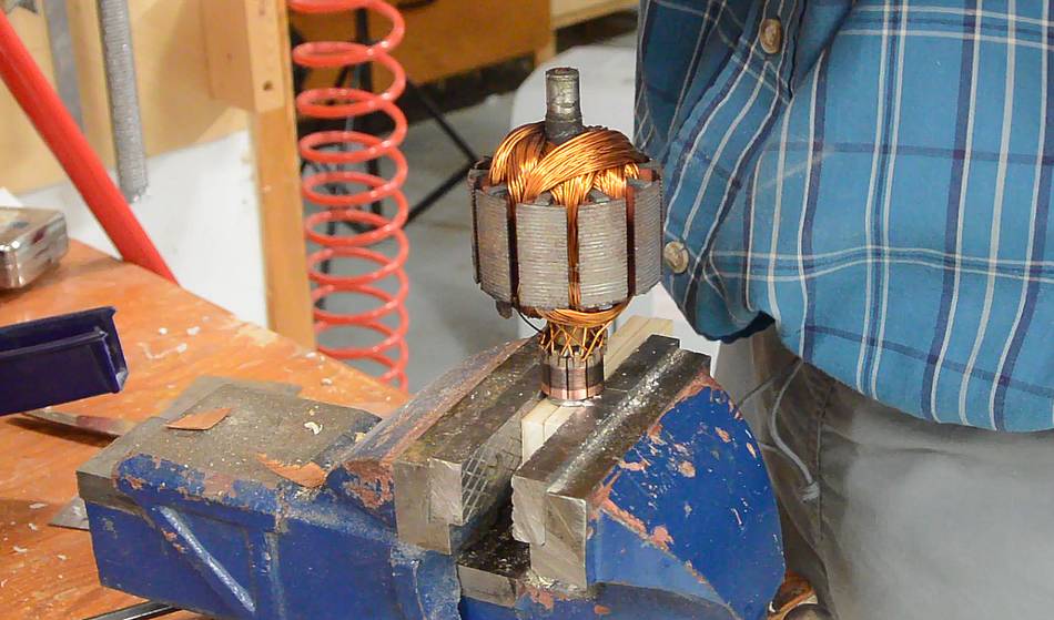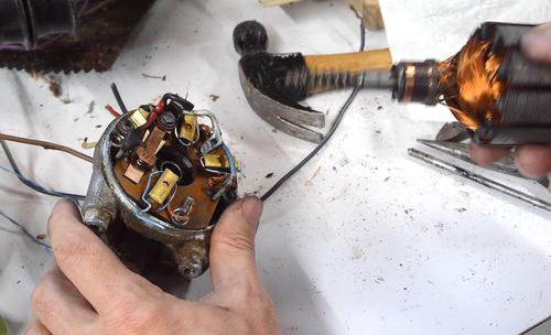 I tied the carbon brushes back with some thin wire so I could insert the