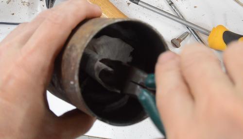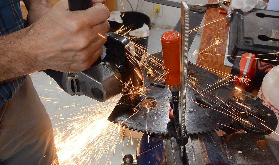 Then cutting out a notch with an angle grinder.
