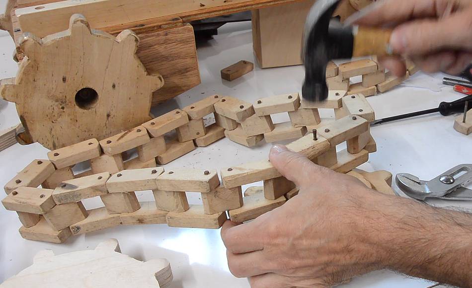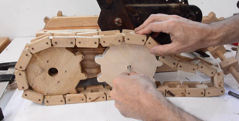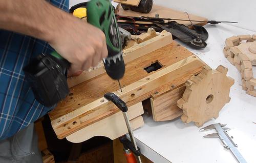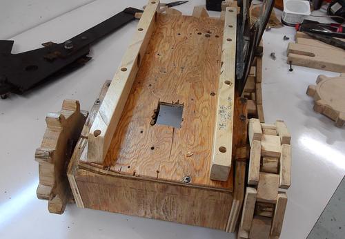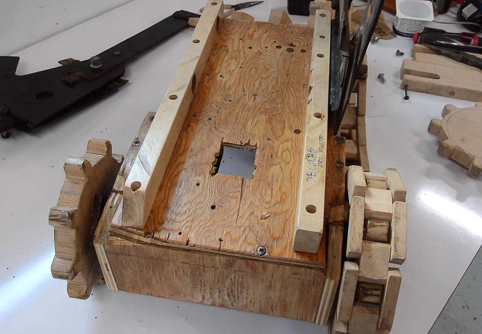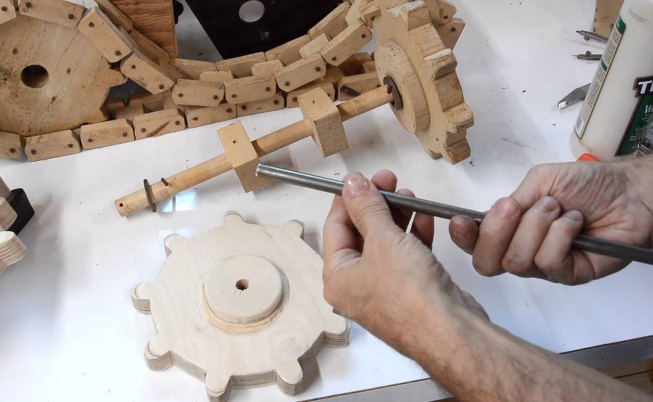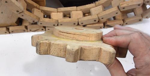 I also glued an extra layer of wood on the sprocket around the hole