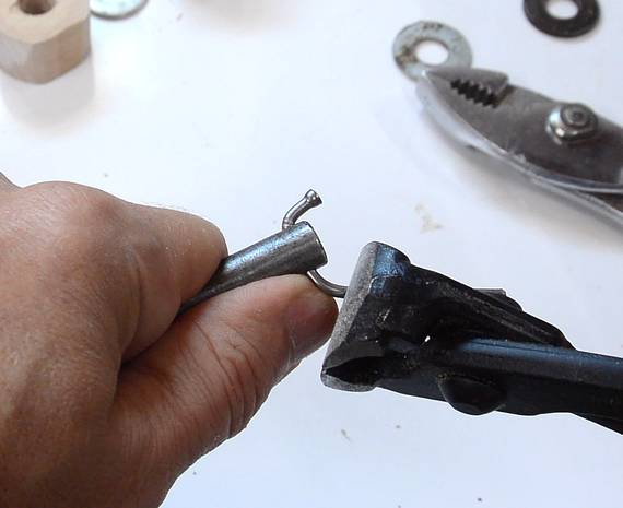 would be more appropriate, but a bent nail works too.
