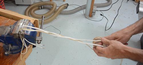by braiding together two lamp cords plus a thicker piece of automotive