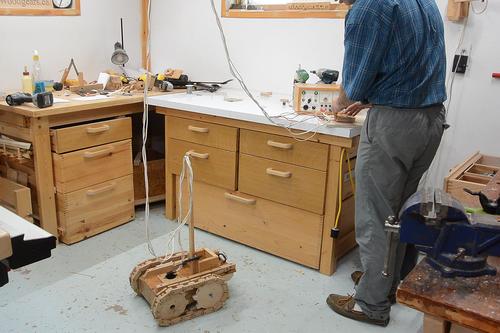 Testing the drive mechanism in my workshop. It works well on the smooth floor.