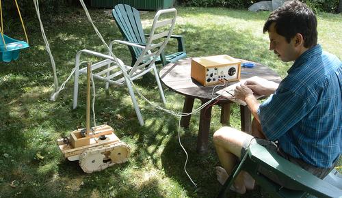Next, testing it in the backyard. It's barely able to turn in one spot