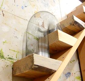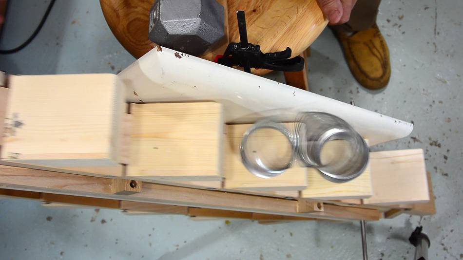 The link chain, resting on a board, for further testing. It was tricky, but I could