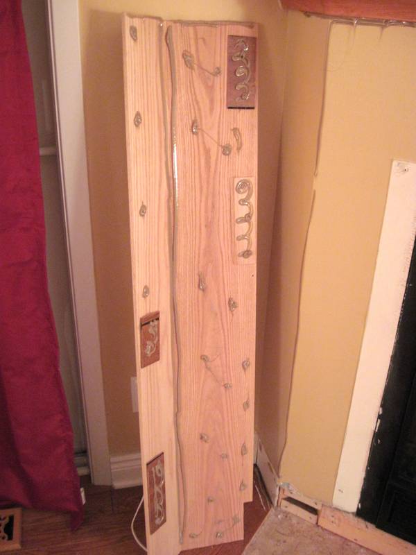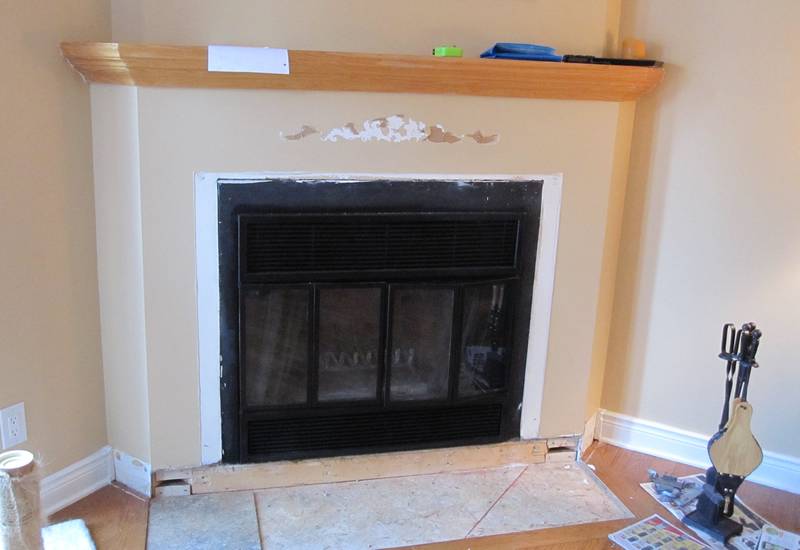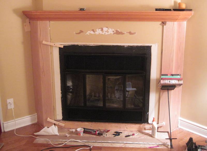 She wanted some oak trim to the left and right of the fireplace, and she wanted the trim to extend all the