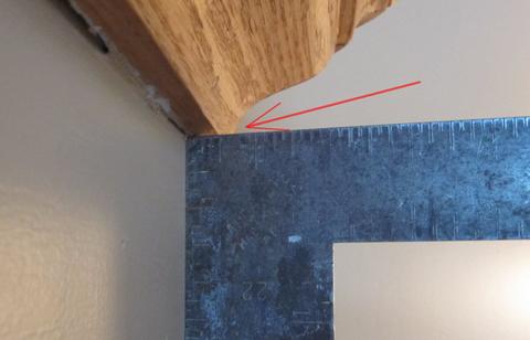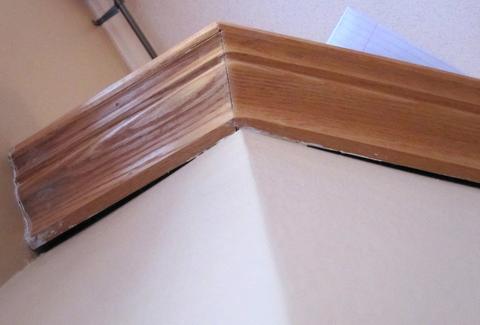 Here's making the bevel cut for the top of the trim to match the existing bevel
