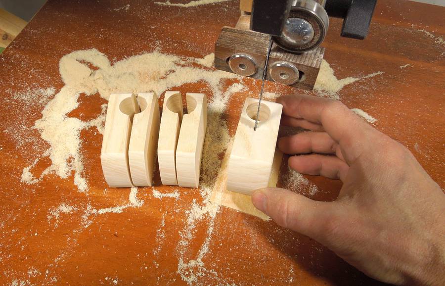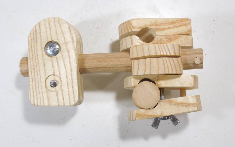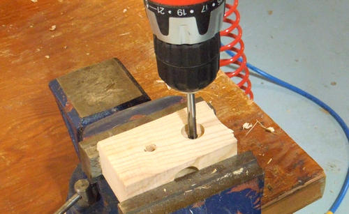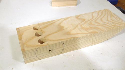 I started by drilling three holes in a wide block of wood. One 3/4" (19 mm) hole