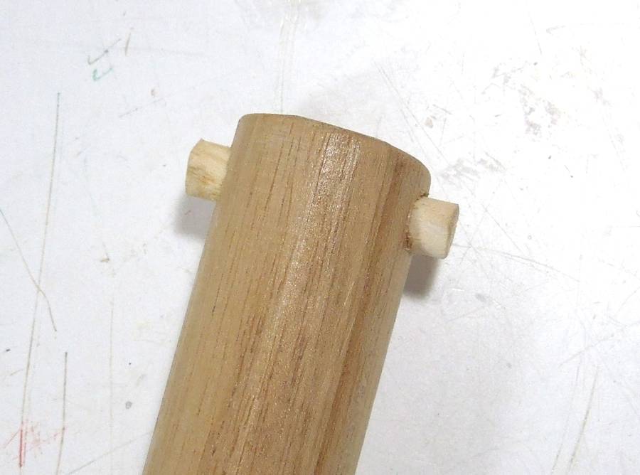 in the middle for a dowel, and two smaller 5/8" (16 mm) holes on either side