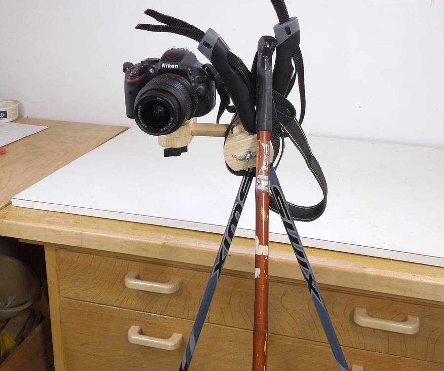 mount it on ski poles, the dowel and camera bracket would often slip out.