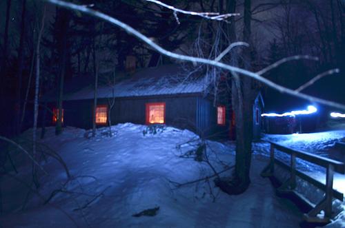 the second photo is lit with my tiny LED headlamp, and candlelight coming out of the windows.