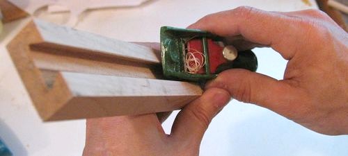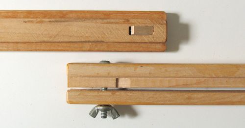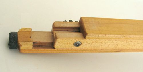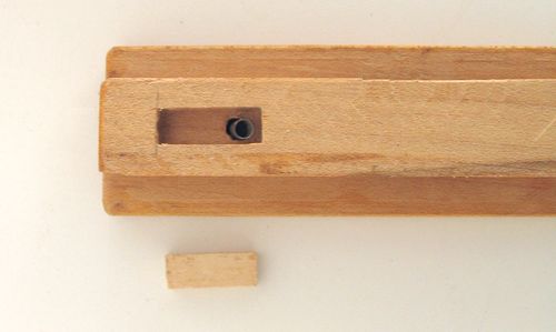 Shown at left is the catch removed from the leg. The catch is just a rectangular piece of wood in