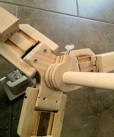 Thanks for your time. Matthias comments: That is a clever change to the design, flipping the legs so that the sliding part is on the inside. I hadn't thought of that, so I had the sliding part on the outside, which meant that I had to keep the shoulder and the hubs very narrow to keep it small and not interfere with folding the legs in.