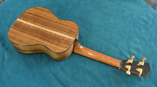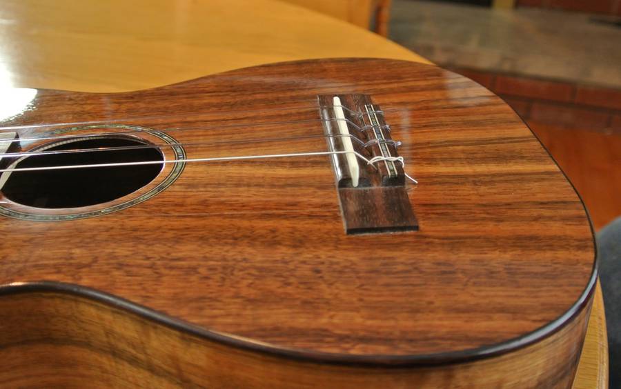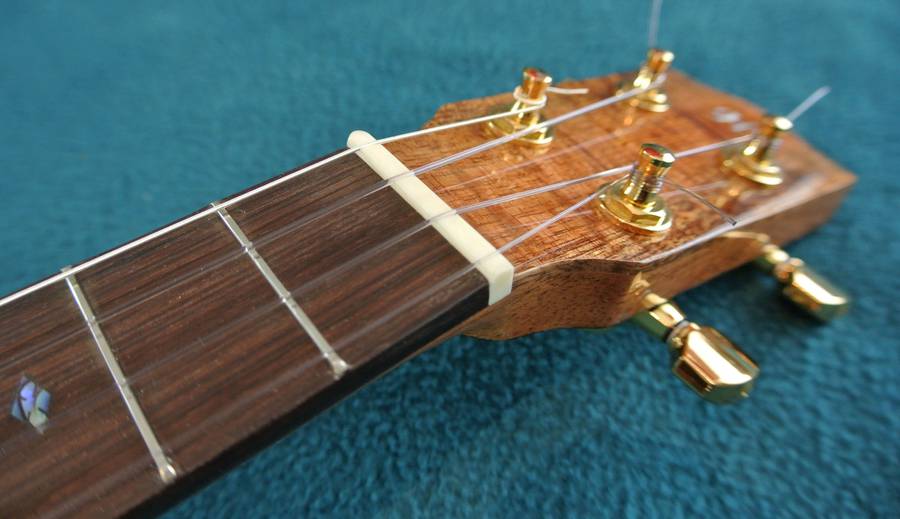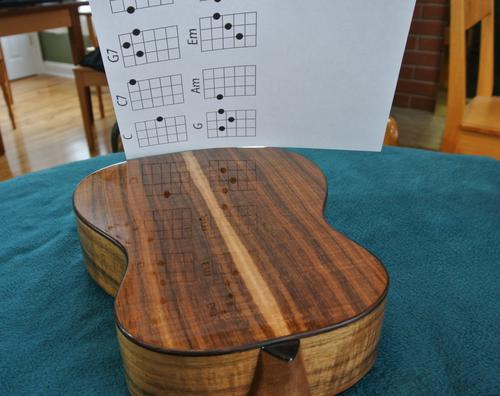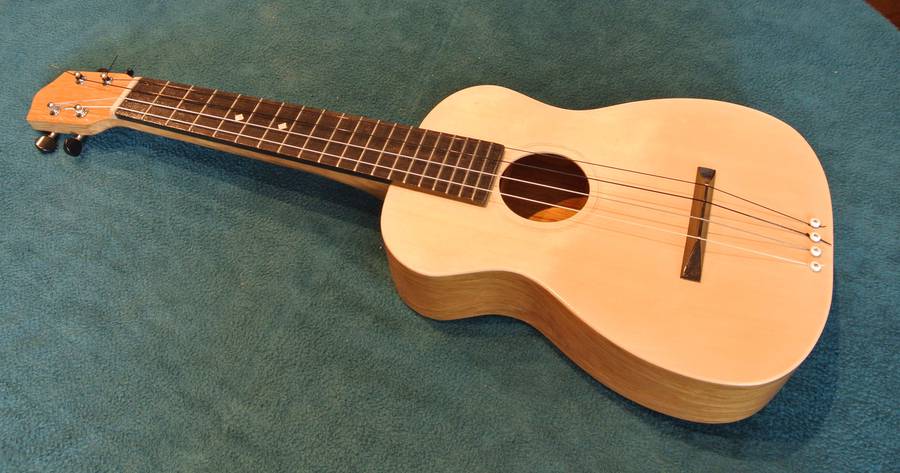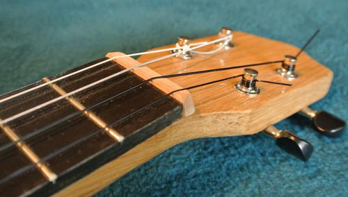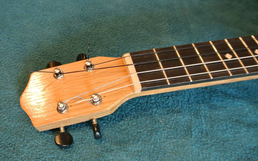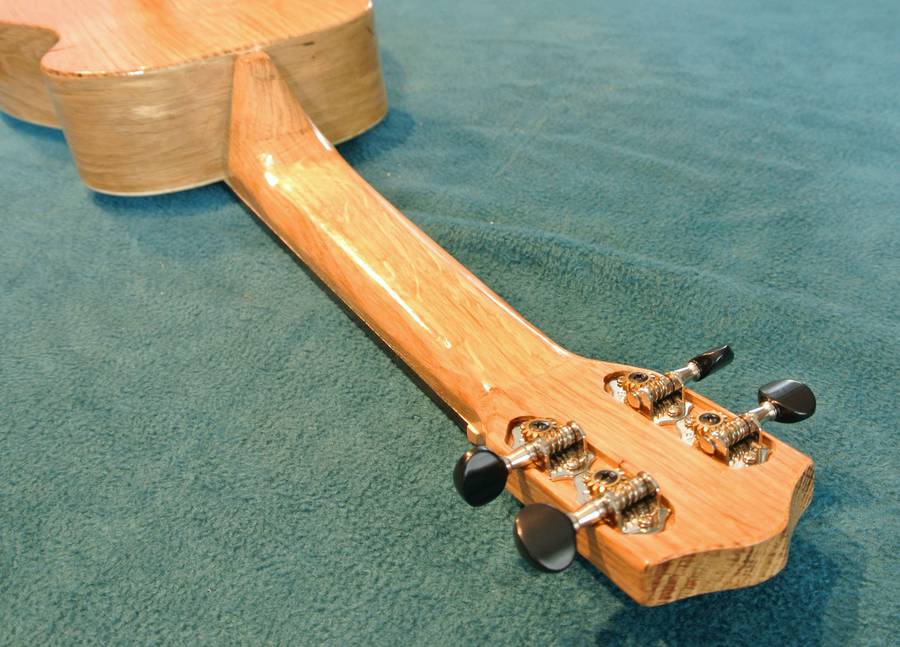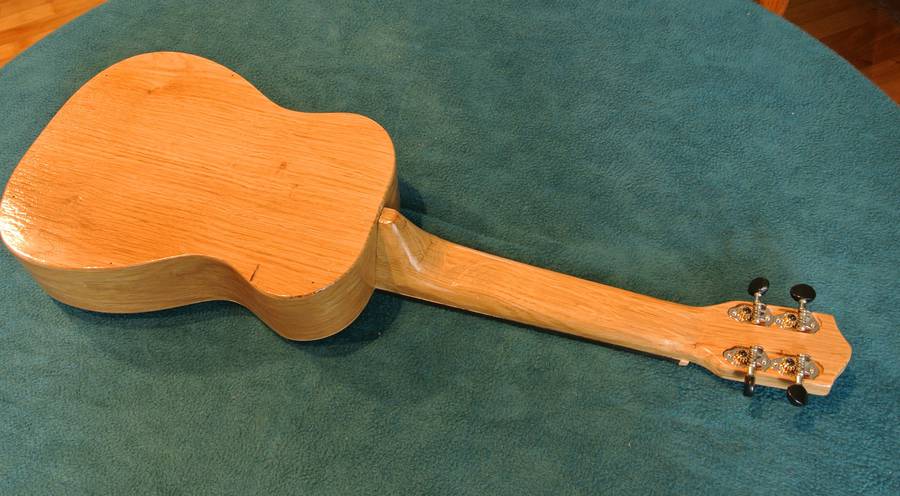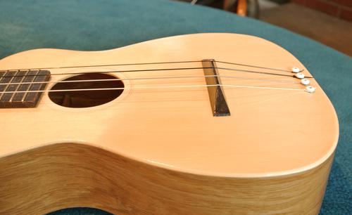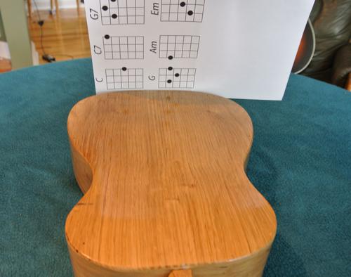 The neck on mine is quite a bit wider than a typical ukulele. I think that makes some cords easier to finger. When Lucas Haneman played some pieces on mine, the wider fret board wasn't a problem (it's still narrower than a guitar), but he found the less rounded neck hard to get used to. I should carve that back a bit. I didn't glue the fretboard onto the body, so taking the neck off is just a matter of undoing the nuts inside the body to remove the neck.
