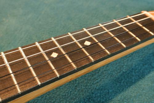 My fretboard is quite plain compared to the one Pat built. The two diamond shapes