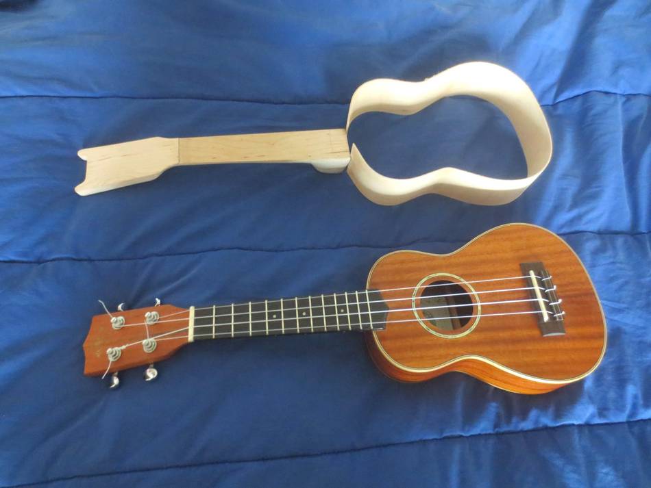 post and cut out two half-ukulele profiles. I saved and reinforced the