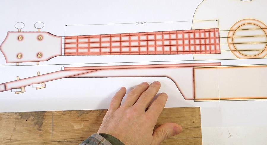 the neck to support it. It would have been easier to cut this front-side-down, but I marked